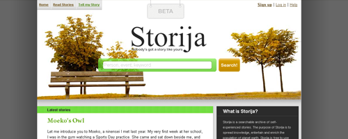 Storija är en databas för verkliga historier upplevda av riktiga människor. Målsättningen är att ge möjlighet för alla i världen att dela och ta del av riktiga människors upplevelser och historier.